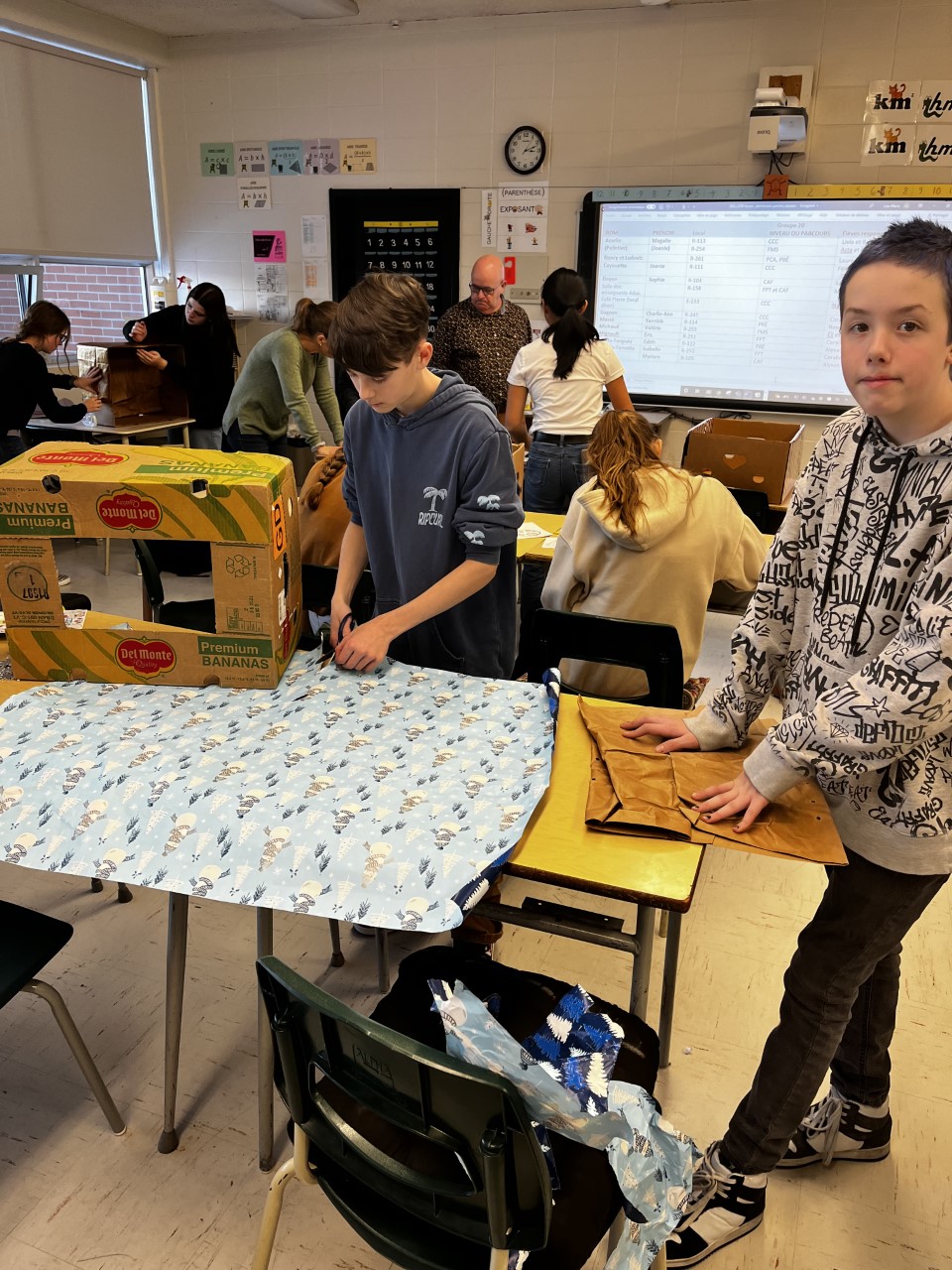 Lors du mercredi après-midi PÉI, les élèves de 2e secondaire ont décoré des boîtes de Noël et les ont distribuées dans vos classes de français pour que vous puissiez y déposer le plus possible d’aliments non-périssables.